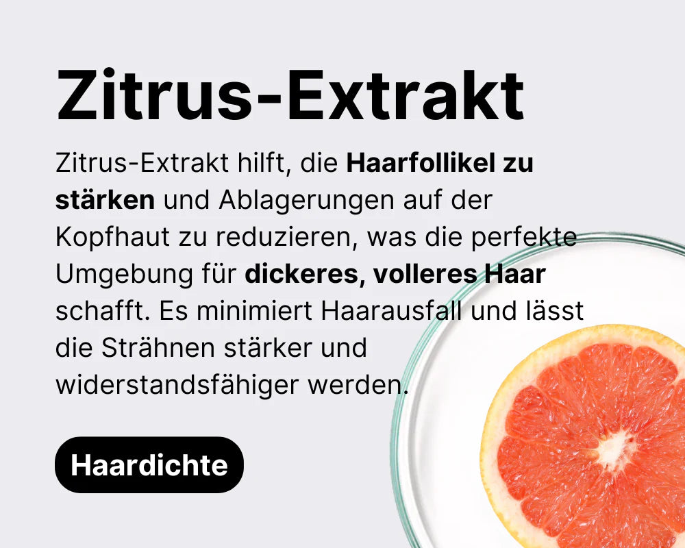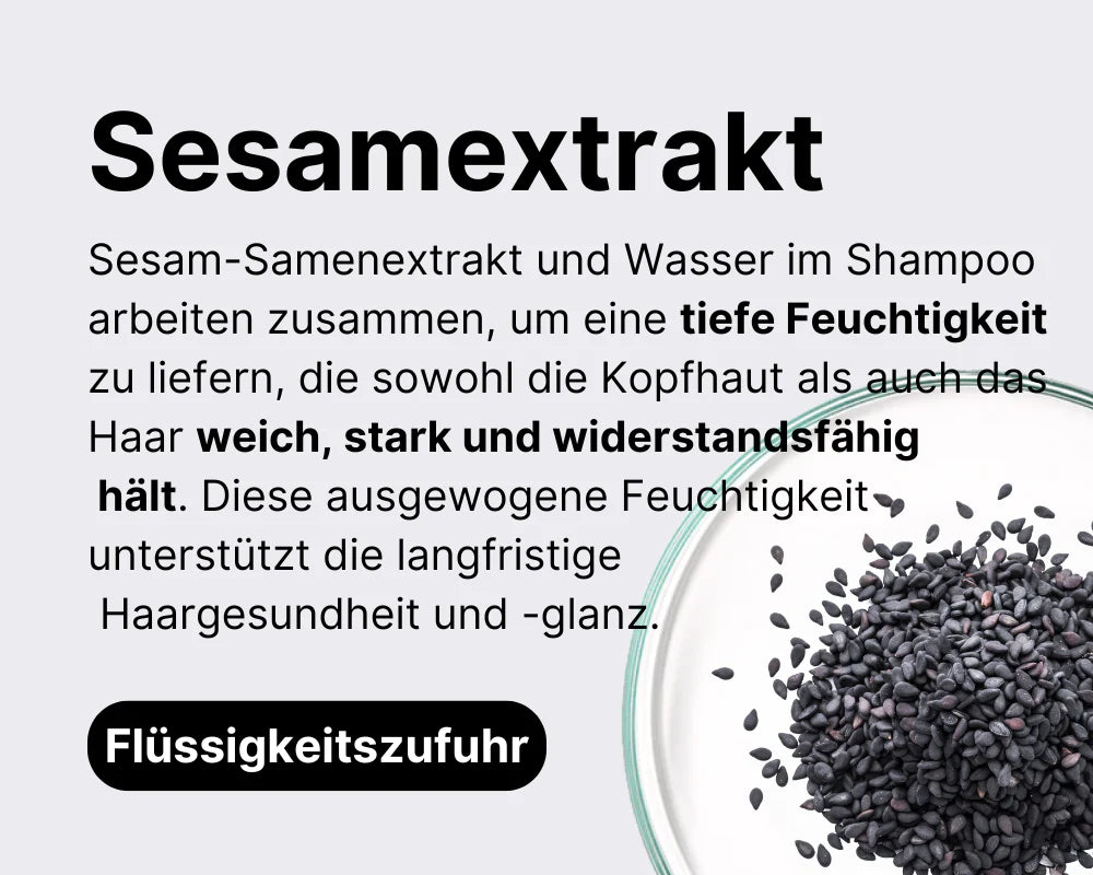 Um eine nachhaltige Lösung zu bieten, haben wir die fehlenden Nährstoffe identifiziert und ein Shampoo entwickelt, das sowohl die Kopfhaut als auch das Haar intensiv pflegt.