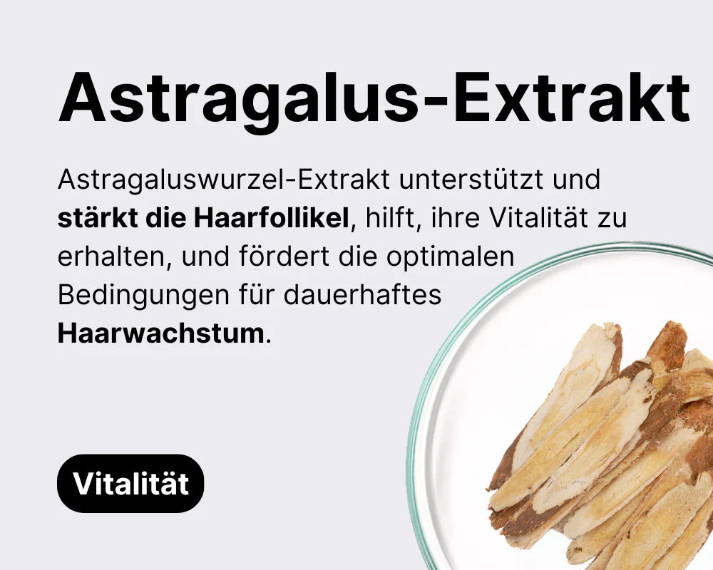 Es ist ganz einfach: Dein Haar kann nicht dick und stark wachsen, wenn deine Kopfhaut durch Toxine, einschließlich DHT (Dihydrotestosteron), blockiert ist, ein Hormon, das Haarausfall verursacht, und daher nicht die nötigen Nährstoffe erhält.